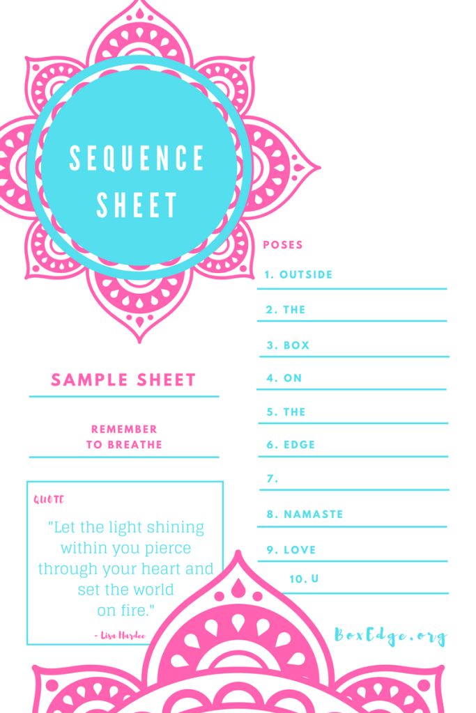 Sequence List - Printable worksheet with typed list of 10 asana poses, 1 breath practice and 1 motivational quote to get you started. Includes FREE inspirational quote boxes focused on this sequence's mindset focus.